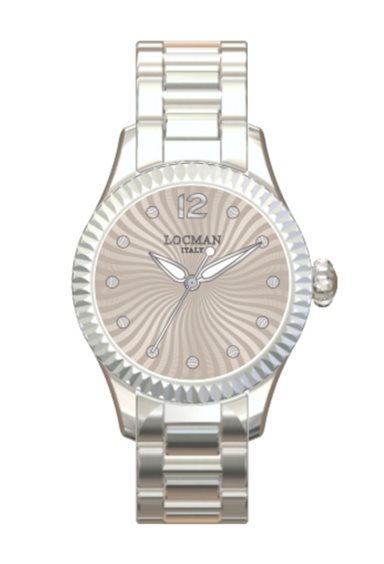 Orologio della collezione ISOLA D’ELBA LADY con movimento solo tempo al quarzo high-tech. Cassa in acciaio chirurgico AISI 316L chiusa da un fondello in titanio satinato, corona a vite con sistema di impermeabilizzazione e con vetro Minerale con trattamento zaffiro. Il quadrante è di color sabbia con un raffinato motivo a raggiera, le lancette delle ore e dei minuti sono a foglia con trattamento luminex all’interno. L’impermeabilità, garantita fino a 50 metri, è resa più sicura dalla corona a vite e da un sistema di tripla guarnizione siliconica.