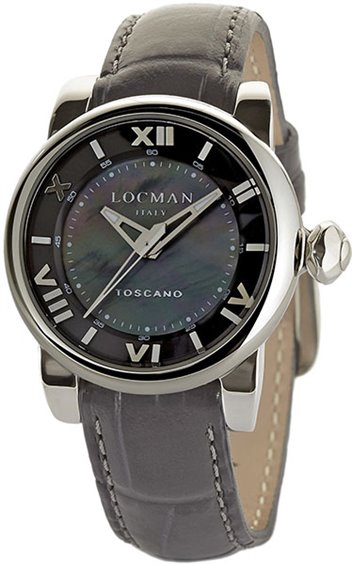 Orologio della collezione TOSCANO LADY, cassa in acciaio da 33mm, quadrante in madreperla naturale grigio con numeri romani applicati, corona a vite, vetro minerale antigraffio trattamento zaffiro. Cinturino in pelle grigia con chiusura ardiglione. Impermeabilità 10ATM. Garanzia 2 anni.