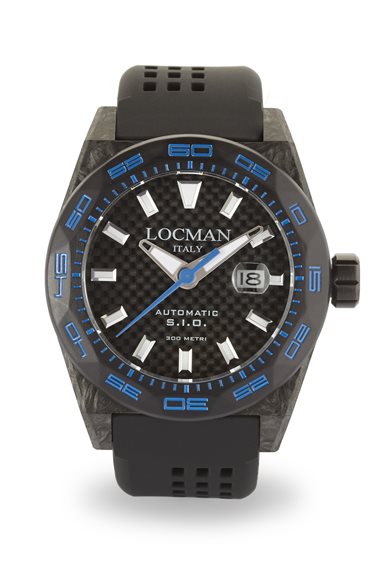 Locman Stealth 300m Automatico con cassa e quadrante in fibra di carbonio, cinturino gomma, fondello in titanio.
